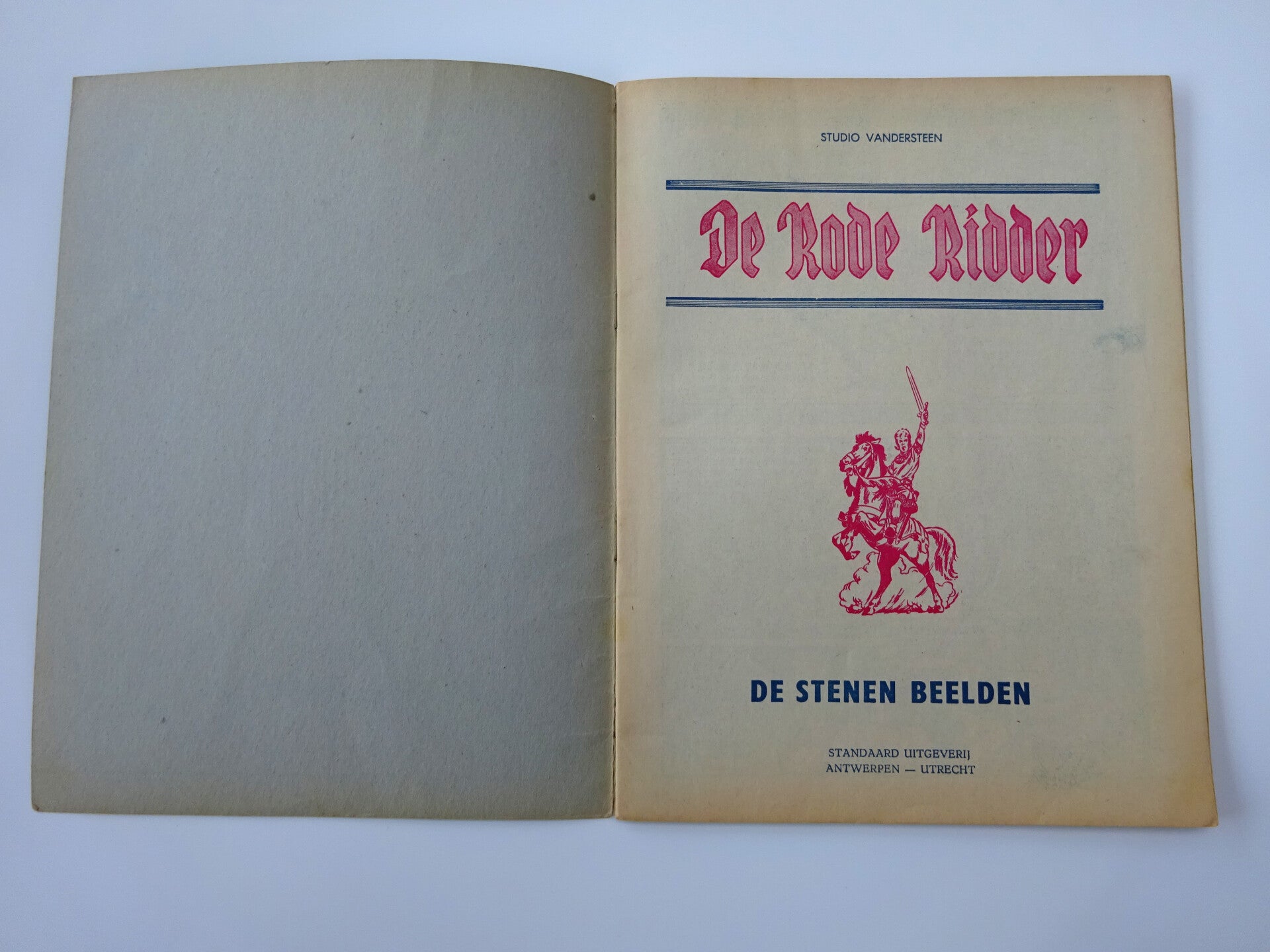 Rug onderaan 4 cm ingescheurd, lettertje op de cover, verder eigenlijk heel mooie kaften en prima boekblok, middenblad stevig in de nietjes.